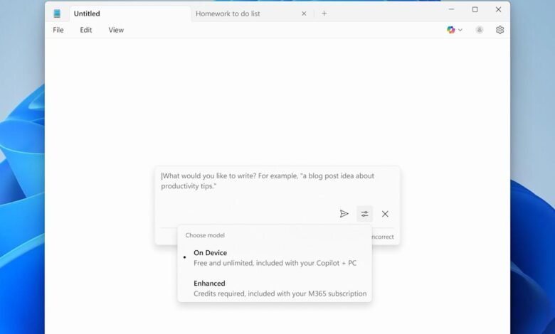 Up to this point, you’ve needed a CoPilot Pro or Microsoft 365 subscription to use Notepad’s AI writing tools. So, if you’ve splurged on an AI PC, this could save you a few bucks each month. And if you have both a subscription and a CoPilot+ PC, it lets you choose between local and cloud generation.