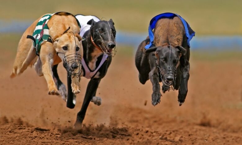 Greyhounds race at full speed. A federal bill could force West Virginia, the last remaining state with greyhound racing, to end dog races. (Image: Shutterstock)