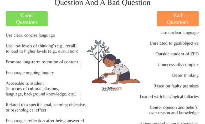 At its worst, a bad question halts the process of learning entirely through confusion, imprecision, and discouragement, misleading both the teacher and student as they make their way through the learning process. (See also What Is The Cognitive Load Theory?)