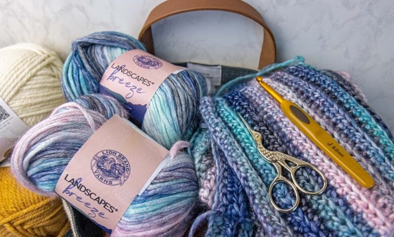 Watching your project come to life, one stitch at a time with beautiful coastal tones | Photo: Better LivingLion Brand offers numerous yarn lines, each with distinct characteristics. Here’s how Landscapes Breeze compares based on common considerations: