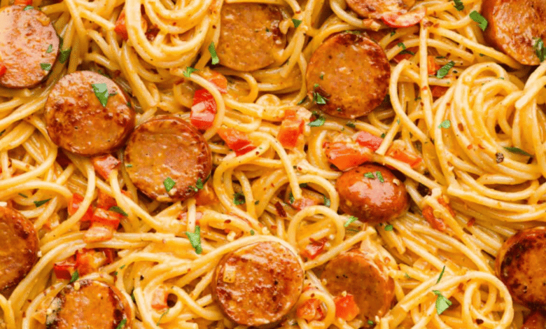 - Add: Whisk in Parmesan cheese until fully melted. Add the cooked spaghetti and browned sausage to the skillet, then toss to coat. Taste and season with salt and ground black pepper before serving your Cajun Spaghetti.