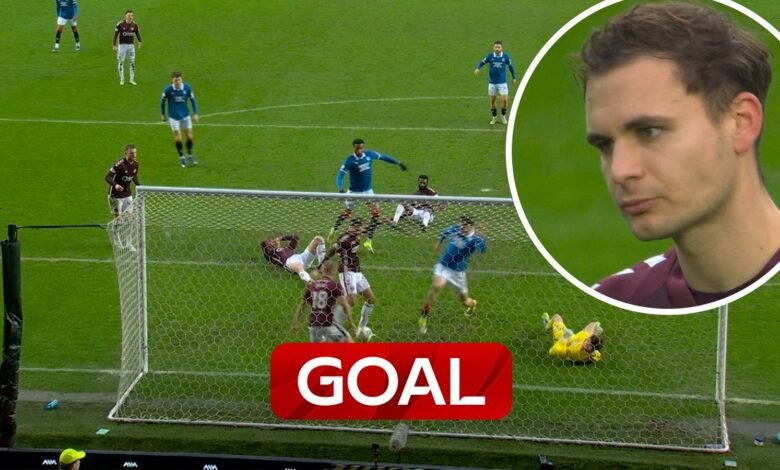 Michael Steinwender's own goal draws Rangers level against Hearts. Source link